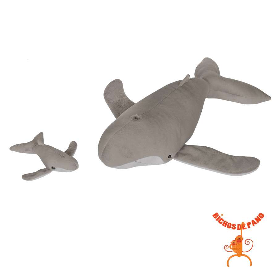 Este modelo artesanal representa uma baleia-jubarte grávida, confeccionada com materiais sustentáveis, seguros e repletos de significado.