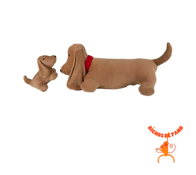 Os bassês são perseguidores talentosos e dedicados. Existem cerca de 20 milhões de receptores em suas narinas que fazem com que o peludo tenha um faro incrível. Apesar de ser muito lento (pois suas pernas são curtinhas) o bassê precisa de exercícios regulares para manter o corpinho! São muito dóceis e brincalhões. Conheça a coleção Bichos Grávidos da Bichos de Pano e aprenda brincando. Mãe com 50x19x17 e filhote com 20x10x9. Cores variadas. Por ser um produto artesanal, pode haver variações nas cores do tecido. Produto em tecido antialérgico (100% poliéster) e fibra proveniente de reciclagem de garrafa PET (100% poliéster).