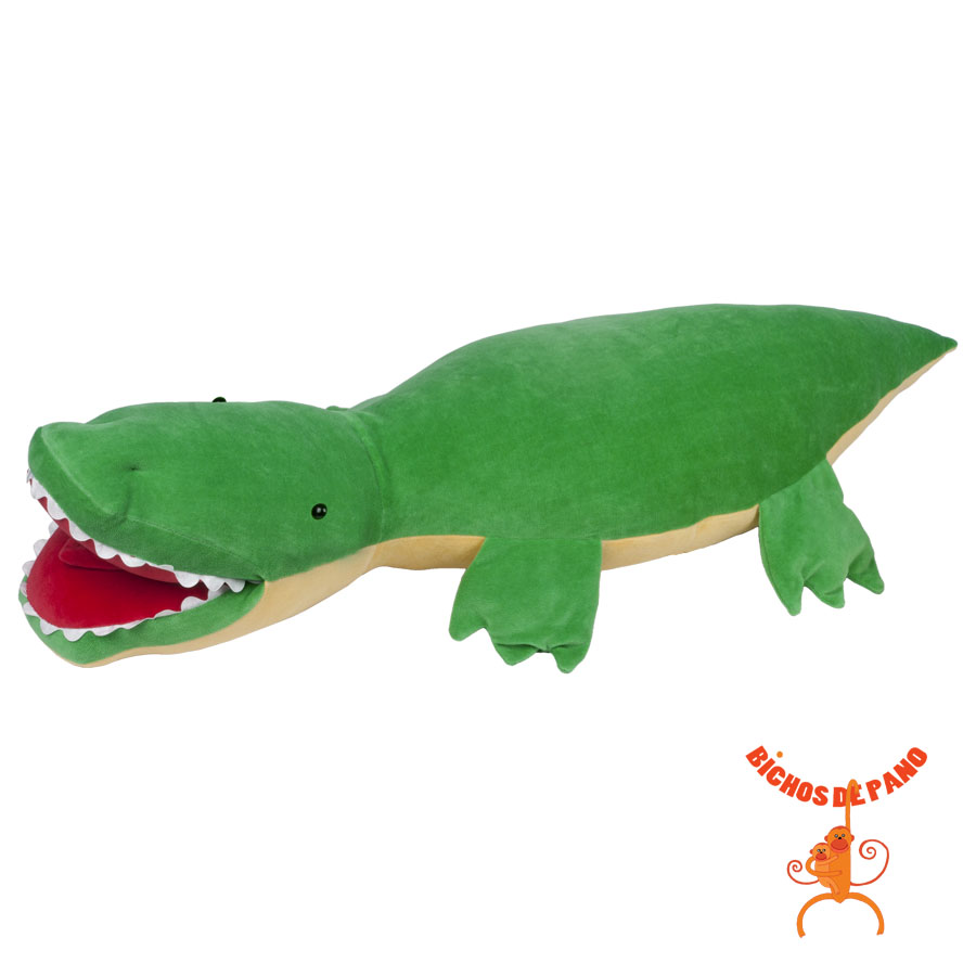 Este modelo artesanal da coleção Filhotinhos representa um jovem jacaré-de-papo-amarelo, convidando as crianças a aprender brincando sobre os animais da fauna brasileira.