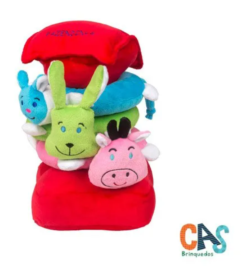 A fazendinha de encaixe explora e potencializa habilidades como a concentração, a curiosidade e a coordenação motora de maneira lúdica e divertida. Fazendinha de encaixe com 15x26x15. Por ser um produto artesanal, pode haver variações nas cores do tecido. Material antialérgico (100% poliéster) e fibra proveniente de reciclagem de garrafa PET (100% poliéster).